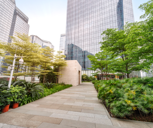 Transforming corporate campuses into sustainable landscapes that support creativity and employee well-being.